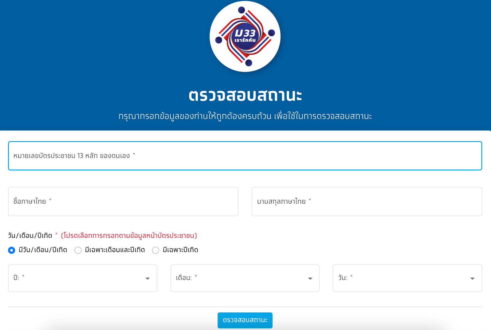 'ม.33 เรารักกัน' อย่าลืมลงทะเบียน 'แอพฯเป๋าตัง' ขั้นตอนมีอะไรบ้าง พร้อมก่อนรับเงิน 4,000 บาท; วิธี เช็ค สิทธิ์ และการยืนยัน รับ สิทธิ์ ในแอปเป๋า ตัง โครงการ ม33เรา รัก. ม.33 เรารักกัน' เช็ค 4 สิ่งต้องมี ก่อนลงทะเบียน 'www.ม33เรารักกัน.com' 21 ก.พ. โดยมาตรการ ม.33 เรารักกัน จ่ายเงินเยียวยาให้กับผู้ประกันตน มาตรา 33 ที่คาดว่าจะมีผู้ได้รับสิทธิราว 9.27 ล้านคน โดยจ่ายเป็นราย. 15 มีนาคม เช็คสิทธิ์ ม33เรารักกัน วันนี้มาอัพเดตความคืบหน้า ม33เรารักกัน เพื่อนๆคนไหนที่ลงทะเบียนไปเรียบร้อยแล้ว ต้องการที่จะตรวจสอบ